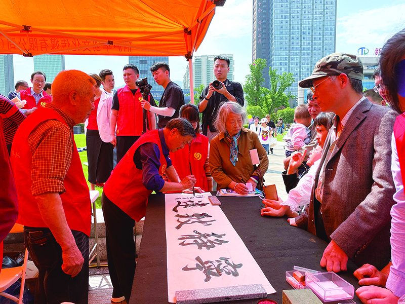 本报讯(记者 徐文静)“老师,给我写一张家和万事兴。”“这隶书写得真是太赞了!”……昨日上午,在中心广场“翰墨颂党恩书画赠百姓”区域热闹非凡,几十位书法家挥毫泼墨,为市民现场题写书法作品,引得市民争相领取。 “今天百姓日有送书法作品的福利,章老师的字写得很棒,我要多领几幅,送给亲戚朋友。”家住洁康公寓的谢春丽一大早就赶过来领取作品,她笑着说:“我儿子要搬新房,正好把章老师的作品带回去装裱起来,给新家增添几分文化气息。” 随着一幅幅作品新鲜出炉,围观的市民齐声叫好。此次活动让更多百姓感受书法魅力,共同欢庆百姓日。 “皖南事变后,重建后的新四军在苏北哪里成立?”“你真棒,竟然答了100分。”……在党史趣味答题摊位前,围满了前来答题的市民。 市民俞余在答完题后还将错误的题目记录下来,他表示:“今年是中国共产党成立100周年,举办这个活动很有意义,既可以丰富我的党史知识,还能获得小礼品,不错不错。” “我们通过设计党史知识问题,让市民现场选题答题,并根据答题得分赠送小礼品。以此引导市民群众厚植爱党、爱国、爱社会主义的情感,让红色基因、革命薪火代代传承。”现场负责人如是说。 与此同时,叶浅予纪念馆举办“生机——读懂丰子恺先生作品里的故事”特展,以图书、老物件、信件、绘画和书法等形式,诠释丰子恺的爱国情怀和艺术思想,展示他平凡素朴,深邃真挚的大爱。 活动期间还开展了“党史书籍进广场”活动、关工委三十周年图片展等活动,向百姓赠送党史书籍,开展党史知识、红色文化宣传等,发挥以史鉴今,资政育人的作用。 |