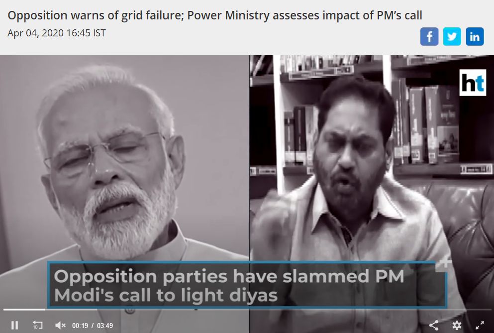 | 莫迪呼吁“关灯9分钟” 印官员:或导致国家电网崩溃 |