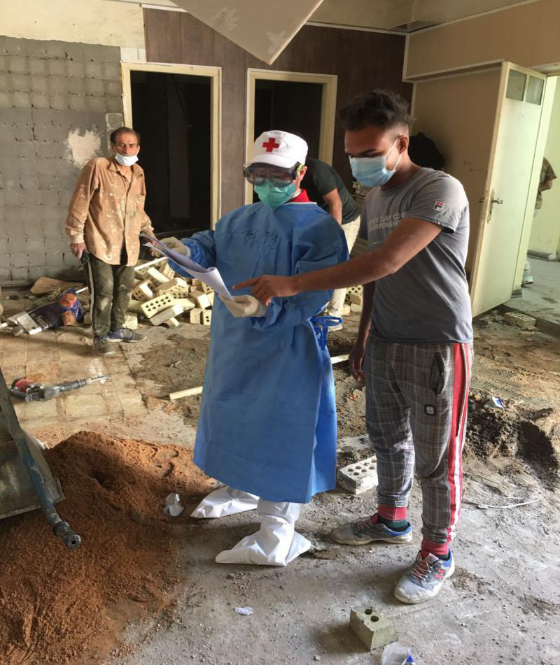 △中国专家组前往探访伊朗方舱医院 几乎在同一时间,另一支中国红会志愿专家团也迅速抵达伊拉克首都巴格达。专家组成员不惧危险,先后辗转前往伊南部各省与北部的库尔德自治区,与当地医疗卫生人员展开面对面交流。在中方专家的建议下,伊拉克政府迅速在多地实施宵禁,禁止大范围聚集活动。随后在短短两周的时间里,中国专家团就依靠带来的医疗设备,建立起一个全新的核酸检测实验室,为伊拉克增加了每日1000例的新冠肺炎检测能力。