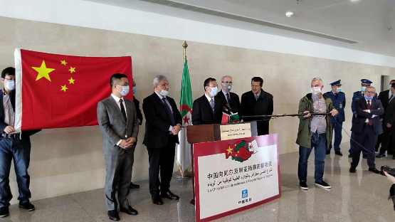 △中国向阿尔及利亚移交援助物资 在中国国家政府的援助之外,中国各级单位、机构和企业甚至普通民众都在为中东抗疫贡献自己力量。中国上海市政府、贵州省政府等分别向其友好城市伊斯坦布尔、友好省份摩洛哥拉巴特大区等捐助了数万份医用手套、口罩等医疗消耗品。以马云公益基金会、中铁建、中建公司等为代表的的中国机构和企业,也纷纷尽其所能向包括苏丹、约旦、阿尔及利亚、科威特等国提供援助。在阿尔及利亚的华人华侨则在阿中华总商会的统筹下,捐资从国内购买了1万个病毒检测试剂盒和16万个一次性医用外科口罩的防疫物资,赠送给阿尔及利亚红新月会。
