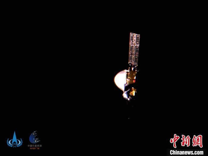 10月1日,中国国家航天局发布中国首次火星探测任务天问一号探测器飞行图像,这是中国天问一号探测器首次深空“自拍”。 国家航天局供图 摄 中新网北京10月1日电 (郭超凯杨璐)10月1日,在举国欢度国庆、中秋双节之际,中国国家航天局发布中国首次火星探测任务天问一号探测器飞行图像,图上的五星红旗光彩夺目,呈现出鲜艳的中国红。这是中国天问一号探测器首次深空“自拍”。 茫茫宇宙中,银色的着陆巡视器和金色的环绕器熠熠生辉,天问一号以此向祖国报告平安,表达生日祝福。探测器上的五星红旗,尺寸约为39厘米×26厘米,略小于一张A3纸,重量144克,图案采用特殊材料经特殊套印工艺喷涂。