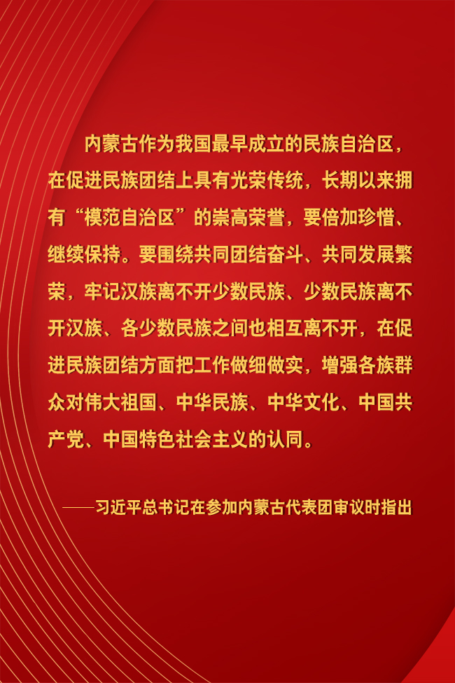 海报设计:张倩 李 介 最伟大的力量是同心合力。习近平总书记5日下午在参加内蒙古代表团审议时强调,要倍加珍惜、继续坚持民族团结光荣传统和“模范自治区”崇高荣誉,巩固发展民族团结大局。 民族团结是各族人民的生命线,也是内蒙古实现跨越式发展的重要保证。作为我国最早成立的民族自治区,内蒙古在促进民族团结上具有光荣传统。70多年来,一代代内蒙古各族儿女,谱写出一曲曲奋斗之歌,书写了一个个民族团结传奇。尤其是党的十八大以来,以习近平同志为核心的党中央高度重视内蒙古改革发展,为内蒙古的发展指明方向。如今的内蒙古,经济结构更加合理,民生改善更有保障,生态环境不断改善,民族团结更为紧密,呈现各民族共同团结奋斗、共同繁荣发展的良好态势。 鉴往事,知来者。内蒙古各族人民用自己的亲身感受揭示了一个道理,只有不断增强各族群众对伟大祖国、中华民族、中华文化、中国共产党、中国特色社会主义的认同,内蒙古的明天才能越来越美好。展望未来,唯有继续在坚持走中国特色解决民族问题正确道路、维护各民族大团结、铸牢中华民族共同体意识等重大问题上不断提高思想认识和工作水平,引导各族群众牢固树立正确民族观,民族才会越团结,相互支持、相互帮助的力量才会越大,共同发展和共同繁荣的水平才会越高。 “像石榴籽那样紧紧抱在一起”,心往一处想、智往一处谋、劲往一处使、拧成一股绳,祖国北部边疆这道风景线一定会打造得更加亮丽。 【编辑:田博群】 |