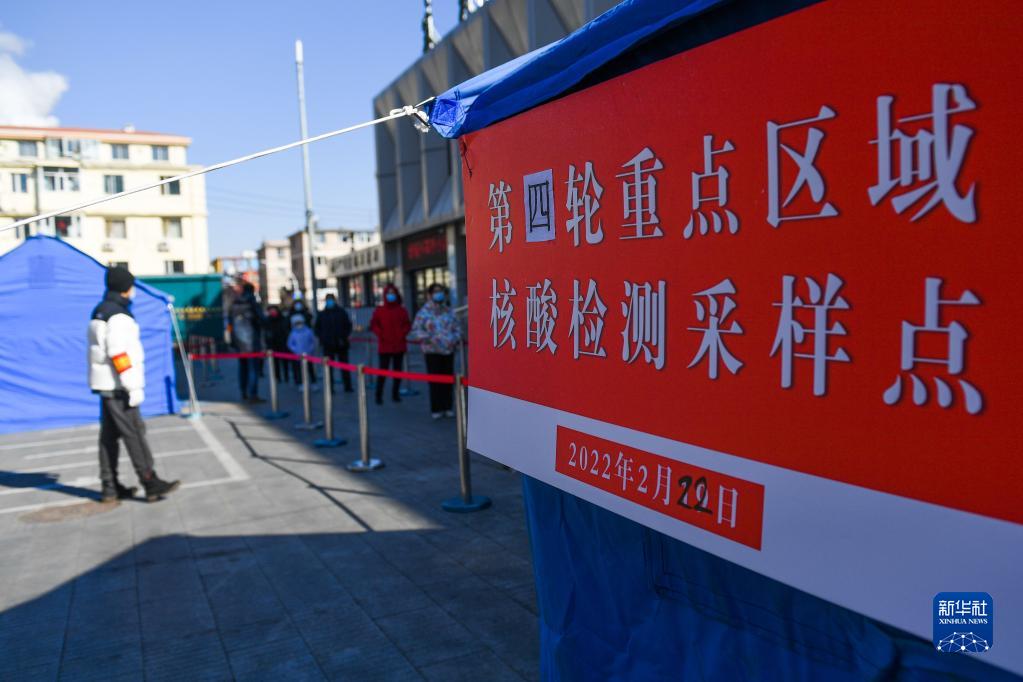 2月22日,在呼和浩特市新城区一处核酸采样点,居民排队接受核酸采样。 2月22日9时起,呼和浩特市启动第四轮核酸检测工作。参检人员在社区工作人员安排下,到指定采集点有序接受核酸采样。截至2月21日24时,内蒙古自治区现有本土确诊病例195例,其中呼和浩特市179例。新华社记者 刘磊 摄 |