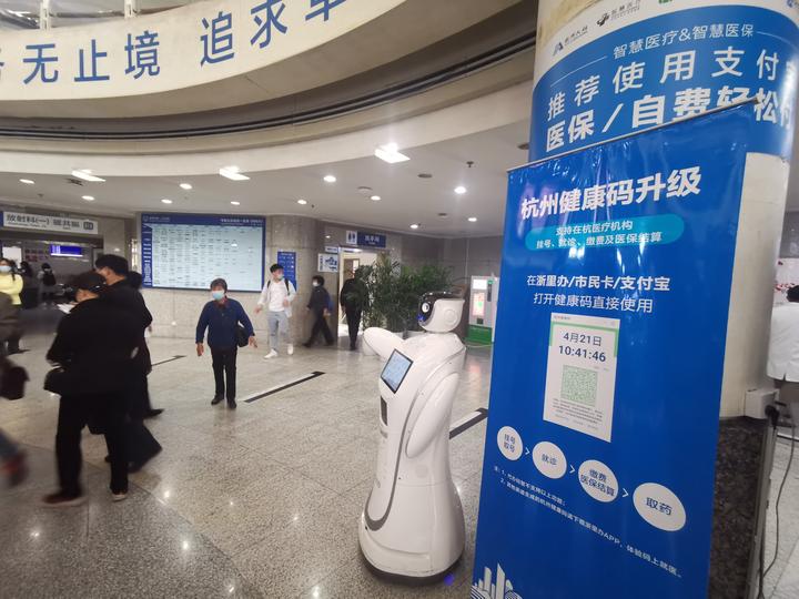 杭州市一医院一楼大厅摆放杭州健康码升级的推广说明。浙江新闻客户端记者 戴睿云 摄 健康码化身超级应用 城市大脑向“需”升级 “以后就不用带医保卡和病历卡了,带上手机就可以看病。”近日,在繁忙的杭州市一医院,陈女士亮出健康码“绿码”入院后,又在志愿者的指导下,首次使用健康码进行了挂号、就诊及医保结算。“新功能上线几天,每天都有几百位患者使用健康码通道完成就医全流程,就医体验又改善了。”杭州市一医院副院长胡炜说。 健康码,这一疫情期间依托杭州城市大脑推出的“国民级”应用,正在杭州继续升级。4月24日起,参加杭州市级医保、开通电子社保卡的市民,可凭健康码前往在杭医疗机构“一码就医”;4月25日,杭州健康码上线“心理援助”板块,为市民心理健康保驾护航;4月30日,杭州健康码又增加“一键急救”功能,通过该功能进行120呼叫,调度台可实时获取求救者位置、健康档案等信息,提高医疗救助成功率…… “要让健康码升级成为大家日常生活中的健康卫士。”杭州市卫健委相关业务负责人说。 目前,依托城市大脑打破数据屏障,健康码功能正不断叠加,化身“舒心就医”场景的超级应用。