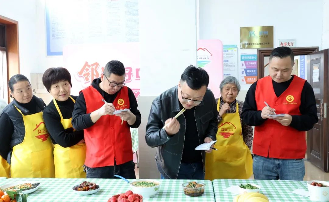 | 日前, 由桐庐县委宣传部、江南镇主办的“巾帼厨艺大比拼”活动在桐庐县江南镇彰坞村文化礼堂、江南镇珠山村文化礼堂、江南镇石阜村文化礼堂、江南镇莲塘村文化礼堂、江南镇舒川村文化礼堂、江南镇窄溪村文化礼堂、江南镇锦江村文化礼堂、江南镇金茂村文化礼堂、江南镇横山埠村文化礼堂举办。 活动现场,18道自制的拿手好菜整齐地摆放在桌子上,活动室立刻菜香四溢,热闹非凡。评委们拿起筷子,有序地品尝满桌的美味佳肴。虽然都是村民们自己做的家常菜,但是外形和味道并不比饭店里的差。评委们纷纷赞不绝口。大家相互请教菜品的制作方法。活动现场欢声笑语,热闹温馨。