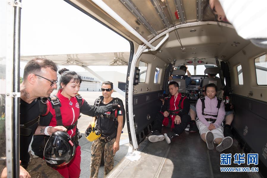 5月12日,在建德航空小镇驼峰跳伞基地,跳伞教练(左一 、左三)带着体验者登机。 随着气温升高,浙江建德航空小镇迎来大批体验高空跳伞的游客。自2017年7月启动华东地区首个高空跳伞基地以来,跳伞体验已成为小镇最热门的旅游项目之一,2018年共接待游客4000余人。 据介绍,近年来航空小镇旅游业态日渐丰富,主题乐园、高空跳伞、直升机低空游览、热气球观光等带火旅游经济。2019年至今,小镇接待游客42.7万人次、营收1511.7万元,分别比去年同期增长39.2%、43.5%。 新华社记者 翁忻旸 摄 |