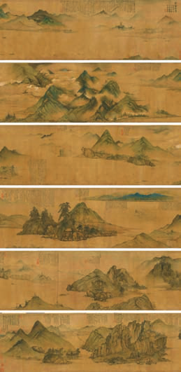 蓝银坤 北京故宫博物院收藏的晚明画家项圣谟“扣舷写照”的“剪越江秋”图长卷是画史中一件难得的对景写生山水画。项圣谟(1597—1658年),字孔彰,号易庵,浙江嘉兴人,明末清初著名画家,出身书画收藏世家(祖父项元汴为晚明大收藏家),以山水、花鸟、人物画著称,代表作品有《剪越江秋图卷》《大树风号图》等,明亡后拒仕清朝,以遗民身份创作,作品多寄托故国之思。 崇祯七年(1634)八月初,项圣谟自杭州江干溯江而上,这是他第三次的越江旅行。他带着笔、墨、颜料以及近七米的长绢出发,计划在舟中对景作画。画卷完全按照旅行行程来画的,从江干起笔,沿富春江溯流而上,经富阳、桐庐到达建德严州,然后进入新安江,抵达淳安县,再转入武强溪,到遂安,全程约五百里。途中所历严子陵钓台、富春山、七里泷、伍子胥庙、龟石滩、双塔凌云等名胜古迹和山水险要之处,都一一画出,诗、文、画都是纪实。 结合画上实景和题跋,我们可以了解项圣谟这趟行程中的经历。 画卷起首,夜泊船于钱塘江江干,山远水迢,迷离空濛,登舟初行,纵目眺览,见云峰与夕阳相映,旋即天暗,秋月出云,钱塘江晚潮潜至,风雨随之骤来,而远岸灯火初明,天上星河渐迥。此情此景将观者引入即将充分展开的一段长长的旅程中来;接着一段是观览群山后,从平远直观转换俯瞰视角,使观者感到舟船过境群山之情境;翌日清晨,船于钱塘江溯流而上。天气乍雨乍晴,江水苍寒,不久途经之江段,项圣谟忽见“一峰,放五色毫光”,询问船夫才知此为“五云深处”(五云山),此时他应该也望见了矗立江岸的六和塔。而霎时又雨满江面,随后忽雨忽晴,山云变幻万状。纵使“诗不能容,画不能尽”,但项圣谟还是试图以画传神,急忙写生。不觉间,船已于大雨滂沱中渐行至富阳,画中遥见富春江边城郭浸于烟岚翠岫中。在这段旅程中,项圣谟还经历了“海啸”与洪水。在越江上“第一险境”,他于熟睡中被江底的轰鸣声惊醒,小舟在澎湃巨浪中首尾倒转,飘摇欲坠。接下来更是连日惊心动魄,直至富春江上游山水幽绝处,才又安定下来写生。 在到桐庐泊舟桐君山下时他写到:“是日连惊绝粒,虽有霁色得以展眉,然所见无非危道。独薄暮将抵桐溪,傍崖而行,坐看十里许,半壁疏松为稍快耳。又为微雨沾衣,是夕泊桐君山下,与尔瞻作畅饮,以其余少慰从者。夜分,大风复吼,梦寐频惊。次日仍泊君山,把酒相对,乐此余生。书此使后人知有临深之戒。” “十有三日晓起,喜有晴色,同尔瞻步遍桐城。将午,风雨复作,溪上绝无行舟。而舟人以风正潮平,又强遡流。及数至桐君山外,洲沙没尽,江水四涌,如海泛滥。风与浪(溯),雨若烟潮。云雾弥漫,山林杳冥,舟人虽有怖色,必无泊意。行十里强之下帆,乃泊龙湫。转不可测,须臾水涨二十余尺,三昼夜风雨不绝,杳无人烟。洚水十余丈高,我舟迁徙不常。已浮林麓之上,山田成泽,岸谷为川。中秋日早起四望,渐喜山出,浮云始动,林屋分明。居人白村厉揭徒涉以至水口,无不延颈摇舌。方与问答之际,忽见峰岭之间复生云雾,小雨如尘,居人争返。刻许开霁,江上始有行舟。舟人促发,余犹惧水未定,不敢扬帆,再宿。薄暮霞光在岭,知今夕必有明月,乃置酒烹鲜待之。不至且饮,饮毕,月出星稀,高吟远眺。明日晓发,山霁水明,渡清子港,汪洋无际。行舟不循故道,以战惧不能补图,止录其诗。 晓望云:日夜喧雨声,四望何晃晃。眼前山尽无,全是江湖想。林树如点萍,心志益茫茫。咨嗟俯仰间,舟挂山腰上。 又问答:茫茫云树村,杳杳隔阡陌。远见行人来,喜与语今昔。江人多答言,江雨七日夕。此水已七年,今复高百尺。 乍晴复有雨意:坐看江水满,又见飞鱼立。白鹭点苍烟,青山云复急。 中秋喜晴,怅然有怀:清秋沉雨后,高岭白云新。江上待明月,杯中怀故人。孤吟看鹭起,野泊听鱼巡。醉意本无限,诗情字字真。 时扬帆进七里垅,图严子陵钓台与诗。是日以山风不定,三转帆,三剪洋,洪波有声,洄潢不律。 题钓台诗云:岭秀峰迴忆昔游,富春无日不清秋。风来六月祠前冷,水合千溪影上流。台放云开双锦绣,亭容雪暖一羊裘。惭予未见先生面,三过桐江费短讴。” 项圣谟在停留桐庐期间因遇大雨大水“行舟不循故道,以战惧不能补图,止录其诗”,逗留期间“步遍桐城”,作诗四首。直到中秋日天晴扬帆进七里垅(泷)才又动笔画了严子陵钓台并题了诗,表明其是“三过桐江”。记中“清子港”应该就是富春江支流“清渚江(港)”。 在画卷中后半部分,江景规模缩小,两江交汇处开始出现一座江洲之上的近山,构成了一个颇为复杂的空间,侧身山体、入江交汇口、江中洲渚,小山以及远山,显现出了吴越山水标志形象。再往后复趋于平静,观者似临江而立,对望江山,平远的视象,却有“左中右三山”并“近中远三层”,以南望北,远处舟楫林立,城郭俨然,这是严州城(梅城)和“双塔凌云”的景致。最后一段突现如屏障般直立起来的陡峭山崖,山体形象变得复杂起来了,画面止于此,似乎也标志着北方中国(山水)的开始展现。他此行虽频遭险境但最终抵达了道教圣山白岳齐云山。 画卷以墨、色渲染,白粉烘云,与崇尚笔墨传统的文人画风尚颇为迥异。项圣谟面对越江景色感叹“此从来画史所未能梦见者”,显然他肯定联想起过往画史的种种图式,但却并不认为这些图式已穷尽造化。在当时画家都选择了转向复古与笔墨的时候,