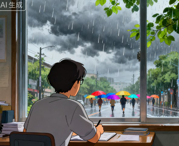 窗外的天空,不知何时已阴云低垂。窗内的我正伏案小憩,雨滴啪嗒啪嗒地敲在树叶上,如窃窃私语。原本要准备翻书的手,就这样停在了半空,目光被窗外那片雨幕深深吸引。 天色已经暗下来了。雨声滴滴答答,像无数透明的手指在每一片树叶上弹奏着无人知晓的曲子。我忍不住起身推开窗,一股清凉且带着桂花香的空气扑鼻而来,湿湿的、甜甜的——那是小区中心的银桂树在雨中吐露芬芳。香气里偶尔混着泥土被雨水唤醒的气息,朴实而清新。 放眼望去,街道上只有朵朵五彩斑斓的伞花在雨中缓缓移动着。闭上眼睛,声音的世界变得格外清晰:雨声从最初的轻柔细语渐渐激昂成一片哗啦作响的乐章,小雨也变成了倾盆大雨。我急忙关上窗,隔着玻璃,世界变得朦胧。隐约的说话声被雨水覆盖,听不大清,很快便被我抛在脑后。 一抬头,竟对上了一双眼睛。一个小男孩趴在对面的窗台上,和我一样望着这场雨。我们隔着雨幕相望,没有说话,却有无声的共鸣,心底泛起一丝暖意。 不知过了多久,乌云渐渐散去,如同谢幕的演员。雨声也戛然而止,世界突然安静得能听见水滴从屋檐滑落的声音。我收回目光,继续端起书阅读,却发现自己时不时地走神。明明是我最爱的书,此刻却敌不过窗外那场雨的余韵。是雨太新奇,还是那个共赏雨景的瞬间太珍贵?答案或许早已和雨水一起,渗入了这个平凡的午后。 华师大附属桐庐学校504班 林静璇 |