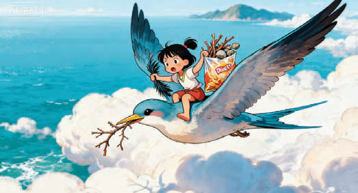 清晨,阳光透过窗户洒在我的书桌上。一张书签滑落在桌面,上面写着《精卫填海》。我一眨眼,就看见天上飞来一只鸟,嘴里还衔着几根小树枝,模样有点儿像精卫。我大声向天空喊:“你好,你知道这是哪儿吗?你是精卫吗?” 精卫慢慢降落在地面,对我说:“你怎么知道我的名字?这里是东海,你是谁呀?”我说:“大家都读过《精卫填海》的故事,怎么会不认识你呢?我叫童筱笛,也不知道怎么回事,就来到这儿了。” 精卫见我知道她填海的故事,便让我坐在她背上,准备带我飞越东海。我战战兢兢地爬上去,精卫叮嘱道:“你可要坐稳了。” 话音刚落,“嗖”的一声,她便展翅起飞。风如利剑般刮过我的脸颊,凉飕飕的。真神奇,我竟然飞起来了。 我和精卫穿梭在软绵绵的云层里,一同飞往西山。我摸了摸口袋,好像有什么东西,拿出来一看,原来是上次装零食的袋子,刚好能用来捡小树枝和石头。我们在西山收集了满满一袋“填海材料”,之后便扛着袋子,在云端朝着东海的方向飞去。 到了东海上空,我们奋力把石头和树枝扔下去,巨大的水花溅到了我的脸上。我抹了抹脸上的水珠,继续跟着精卫往返于西山与东海之间。精卫见我不顾劳累地帮助她,十分感激,便带我去了她的住所——发鸠山。 精卫告诉我,这里就是她生活的地方。发鸠山空气清新,山清水秀,风景如画。我不禁感叹:要是人类能人人重视环保,好好爱护地球,我们的家园一定也能像这里一样美好。 就这样,我和精卫成了最要好的朋友。太阳渐渐西沉,离别之际,精卫从身上拔下一根羽毛送给我,说:“只要你想我了,就看看这根羽毛。” “起床了,小猪。”妈妈的呼喊声把我吵醒。原来这只是一场梦,但我的书桌上,还留着那张《精卫填海》的书签,以及一支和梦中羽毛一模一样的羽毛水笔…… 春江小学四(3)班 童筱笛 |