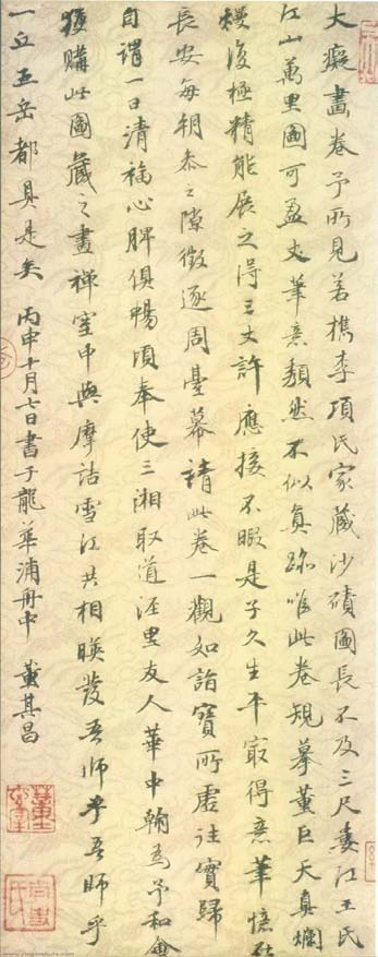 董其昌《仿黄公望富春大岭图》 启孙若裘书 董其昌 前过富春,因得旷眺山川,吊怀人物,桐君为发迹之祖,子陵高风,千古独绝。唐方干,宋谢翱,配祀百世不祧。我明徐舫,不慕荣名,啸傲烟霞,诗酒以终其身,殆古隐者欤!我思古人,实获我心。 桐山有九头松,状如虬龙,大奇。浙中山水,桐溪为最,郦道元云:“连山夹岸,负势争高,青崖翠发,望同点黛,绿水平潭,清淡澄深,俯视游鱼,如行空矣。”此盖为桐江写照也。 恨不与年翁共此快游,至今悒悒。 送赵孟清归桐庐 董其昌 燕市悲歌地,周南留滞年。 交期论世外,标格在诗前。 不灭遗书字,高吟宝剑篇。 严村犹汉腊,归棹雪江边。 酬桐庐潘令 董其昌 岂有乘轩宠,深惭负弩情。 茱萸催令节,兰芷忆南征。 雉乳寻常事,鸥波浩荡轻。 使君多重客,能著钓徒名。 陈继儒(1558—1639),字仲醇,号眉公、麋公,松江府华亭(今上海市松江区)人,明代著名书画家、文学家、收藏家。工诗善文,兼能绘事,擅长墨梅、山水。屡次皇诏征用,皆以疾辞。万历至崇祯年间多次参与赈灾事务,上书请求减免松江赋税、设粥局救荒。论画倡导文人画,持南北宗论,重视画家修养,赞同书画同源,传世书画作品众多,著有《陈眉公全集》《小窗幽记》《妮古录》《吴葛将军墓碑》等。其中《小窗幽记》为修身处世格言,主要讲述安身立命的处世之道,思想杂糅儒释道三家,至今广为流传。其写桐庐的诗歌有《钓台》一首。 钓 台 陈继儒 岩祠秋欲暮,濑水澹晴晖。 拜罢解维去,清风振客衣。 黄汝亨(1558—1626),明代书法家、文学家,万历二十六年进士,官至江西布政司参议。其早年寄居杭州云居圣水寺、灵鹫禅院研习举业,编纂《灵鹫山素业》《坛石山素业》等科举教材。万历四十三年(1615年)增订宋代《廉吏传》并提出清官品评标准,体现其学术影响力。书法造诣受到时人推崇。对篆刻艺术有独到见解,留有《题洪复初印章》等艺术评述文献。 范明泰(生卒年不详),字长康,嘉兴桐乡(古称醉里)人,明万历举人,著有《米襄阳外记》《米芾志林》。 赵如献(生卒年不详),桐庐人,晚明书法家,其在钓台有“一丝九鼎”隶书摩崖,毛一瓒《钓台四首》等石刻(碑刻)。 三、打造钓台修禊文化品牌 东晋永和九年(353)的兰亭修禊,可以说是王羲之的一次无心之举,此次雅集诞生了天下第一行书《兰亭集序》,序言本身就是一篇千古妙文,也成就了王羲之书圣美名。从此,兰亭与书法结缘,成为中国书法圣地。兰亭修禊亦成为千古雅集,历朝历代,无数文化名流仰贤崇迹,追攀流连。唐代王勃、鲍防,元代贡师泰、刘仁本,清代桑调元,近现代沙梦海、启功等名家大师竞相效仿晋人高蹈,留下了大量诗文书画名篇。兰亭雅集成为了中国文化的千古名片,与之共生的诗酒文化也成为中华文化的金名片。 富春山严子陵钓台不仅山水环境独绝,而且人文底蕴深厚,是古今文人雅集的最佳场所。自北宋景祐元年(1034)名臣范仲淹知睦州,重建严先生祠。至清代嘉庆九年(1804)名臣阮元重修,其间历代官修17次(修钓台23次)。魏晋南北朝以来,数以千计的文化名人途径钓台,均拜谒严子陵祠堂,留下了1900多首(阙)的诗词佳作,形成了“往来桐江船,必拜严子祠”(宋代赵蕃《拜严方范祠》)的文化现象。 历经千余年的历史文化积淀,严子陵钓台留下了大量石刻碑志。上世纪八十年代初(1981—1983)和九十年代初(1993),严子陵钓台两次邀请当代著名书法家,和日本、韩国等知名书法家书写钓台诗词文章,并镌刻立碑150余方,集“文学、诗词、书法、雕刻、建筑为一体”,形成“严子陵钓台碑园”,有“江南第一碑林”的美誉。