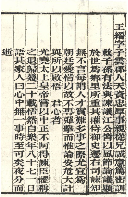 王缙(1073—1159),字子云,宋时分水塘源村人。王缙博览群书,才思敏捷,徽宗崇宁五年(1106)登进士。此后长期在地方任职,官至英州知州、常州知州,朝廷曾赐其三品服。为官清正廉明,勤于政事,为地方百姓做了不少好事。特别是作为言官,揭徯斯评价王缙为“真谏官”,宋高宗也称赞他“中正不阿,得谏臣体”。 南宋建炎年间(1127—1130),政权立足末稳,朝中官员派系不一,政见分歧。绍兴初年,吏部对官员进行考核,王缙品行与治绩皆列一等;奉诏入对,评说时政得失,呼请同僚消除猜忌,同心同德,共渡国难,深得高宗赞许。王缙秉公直谏,绍兴五年(1135)八月上任之初,上《上殿第一札子》,批评“纪纲不正、守法不严、储蓄不广、赏罚不明、军政不立、风俗不厚”等弊病,得到了宋高宗的褒奖。绍兴七年(1137)正月,王缙又上《言纪纲法度之不振》,拳拳之心,溢于言表。 王缙对百姓充满着怜悯之心。绍兴七年(1137),两浙和淮西一带大旱,庄稼歉收,百姓生活陷入困顿。王缙及时上疏《言平政修德弭旱灾》,朝廷很快采纳了他的意见,通过多种赈济措施,使两地灾民顺利度过了难关。 王缙主张抗金,反对议和,力保抗金力量。绍兴七年(1137),多次力保张浚,上《言张浚可以复用》的奏疏力挺张浚。 王缙不畏权贵,刚正不阿。曾严厉谴责与秦桧素有交往却投靠刘豫的伪齐政权的人。秦桧公报私仇,趁机罢免了王缙知州之职。王缙便以年老为借口提出辞呈,回到分水老家过起了闲居生活。 孝宗隆兴二年(1164)五月,张浚到分水探望王缙,于浪石亭畅谈。张浚写诗《会讌浪石亭》赠王缙。 王缙在家闲居长达二十余年,87岁高龄卒于家。临终时,对家人说:“平生未做亏心事,死而无憾。” 王缙著有《霜台谏稿》四十一卷及《宋名臣言行录》。光绪《分水县志》录有他的奏疏四则。入祀乡贤祠。 分水王氏自王缙之后家族开始兴盛,有宋一代分水王氏共涌现了十六位进士。王缙六世孙王梦声在元初因出任昆山州学正而定居江苏太仓,其后代发展成横跨明清的衣冠诗书望族太仓王氏家族,明代中期的文坛盟主、史学巨擘王世贞即为王梦声的八世孙。 徐 舫
