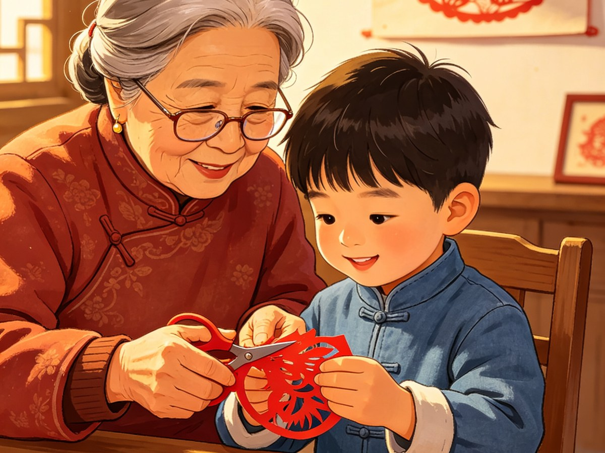 图片由AI生成 世界上有几种艺术能在薄纸上绽放万千气象?在我的家乡桐庐,剪纸就是这样一门藏着诗意的艺术。还是先从桐庐剪纸的起源讲起吧。外婆说,桐庐剪纸已有上千年历史,从古时的窗花,到如今的非遗,它一直是桐庐人表达心意的方式。 逢年过节,人们都会剪上几幅窗花贴在门窗上,用红纸剪出吉祥纹样,把对生活的美好期盼都藏进窗花中,这是属于桐庐人的一种浪漫。剪个“福”字倒过来,寓意“福到了”;剪匹奔腾的骏马,便是“一马当先”;剪个胖娃娃抱着鲤鱼,就是对新一年五谷丰登、阖家安康的祝福。每一刀都有讲究,每一幅都藏着心意。 我不由想到了外婆教我剪纸的场景。一张大红纸铺在木桌上,外婆握着我的手,先把纸对折再对折,叠成小小的方块。而后,她拿起锃亮的剪刀,只见剪刀灵活地在纸间穿梭,没有草稿,却胸有成竹。我也学着外婆的样子,小心翼翼地剪起来,起初总是剪得歪歪扭扭,不是把花瓣剪破,就是把线条剪歪。外婆笑着握住我的手,慢慢引导:“剪纸要沉住气,一步一步来。”没过多久,一幅“春燕啄柳”的剪纸就成型了。燕子的翅膀轻盈灵动,柳条随风飘动,红纸上的纹路透着光,像活了一般。外婆把它贴在窗上,阳光透进来,红影摇曳,整个屋子都暖暖的。 如今,桐庐剪纸早已走出家乡,成了国家级非物质文化遗产代表性项目之一。但在我心里,它永远是外婆手里那把银剪,是窗上那片红影,是春日的燕子,在桐庐的土地上代代飞翔。 实验小学六(3)班 刘逸晨 |
