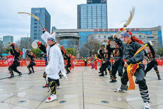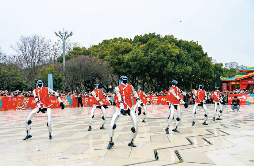 “春晚同款”机器人秧歌队灵动起舞