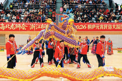 | 2月28日,“天南海北龙狮会 浙江桐庐闹元宵”2026桐庐元宵民俗大踩街活动举行。活动现场,富春江镇金家板龙、潮汕英歌舞、揭阳青狮、机器人秧歌队逐一亮相,南北文化深度交融,科技与传统交相辉映,让我县观众沉浸式感受中华优秀传统文化的多元魅力与蓬勃生机。