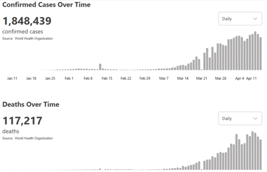 世卫组织:全球新冠肺炎累计达到1848439例 http://www.tlnews.com.cn/2020年04月15日 08:40:55 央视网 根据世卫组织最新实时统计数据,目前全球确诊新冠肺炎1848439例,死亡117217例,中国以外超过176万例。 原标题: 世卫组织:全球新冠肺炎累计达到1848439例 作者:记者 朱赫 网络编辑:吴晓斌