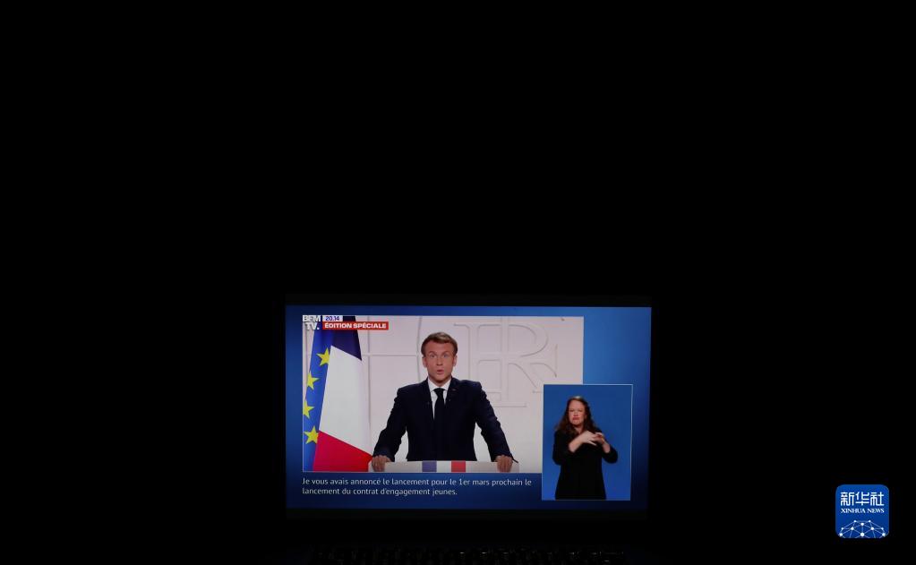 这是11月9日在法国巴黎拍摄的法国总统马克龙就法国能源供给和新冠疫情防控等问题发表电视讲话的直播画面。 法国总统马克龙9日表示,法国计划重启境内的核反应堆建设。他说,为了确保能源独立性并履行减排承诺,法国几十年来将首次在境内重新开始核反应堆建设,同时继续开发可再生能源。 新华社记者 高静 摄 |