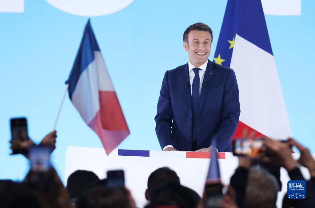 4月10日,法国总统马克龙在巴黎参加总统选举首轮投票后的集会。 根据法国媒体10日晚公布的出口民调结果,现任总统埃马纽埃尔·马克龙和极右翼政党“国民联盟”候选人玛丽娜·勒庞在当天举行的法国总统选举首轮投票中得票领先,将进入第二轮投票。 新华社记者 高静 摄 |
