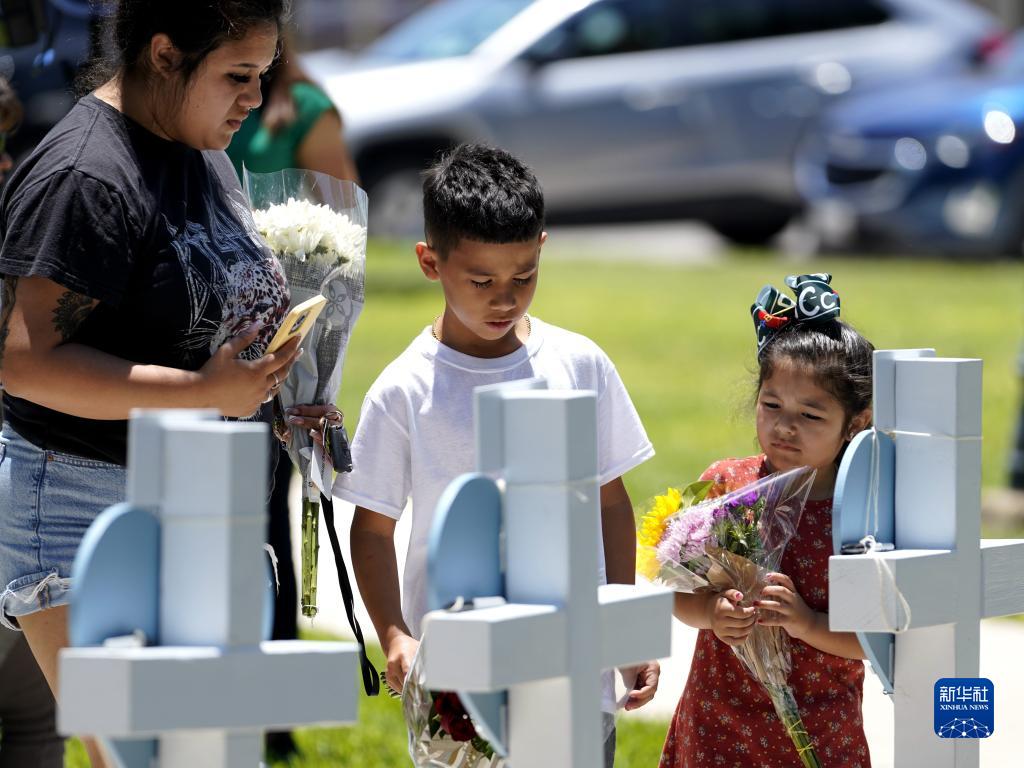 美国尤瓦尔迪市民众哀悼枪击事件遇害者 http://www.tlnews.com.cn/2022年05月27日 10:03:39 新华网 5月26日,在美国得克萨斯州南部尤瓦尔迪市,人们哀悼枪击事件遇害者。尤瓦尔迪市一所小学24日发生枪击事件,造成至少19名儿童和2名教师死亡。枪手被击毙。新华社记者 吴晓凌 摄 原标题: 美国尤瓦尔迪市民众哀悼枪击事件遇害者 作者:吴晓凌 网络编辑:叶佳