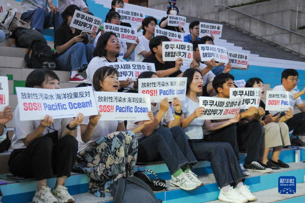 韩国市民团体集会抗议日本核污染水排海 http://www.tlnews.com.cn/2023年09月01日 09:17:17 新华网 8月31日,市民手举标语在韩国首尔光化门广场附近参加集会,抗议日本核污染水排海。当日,韩国市民团体在首尔光化门广场附近举行集会,抗议日本核污染水排海。新华社发(杨畅摄) 原标题: 韩国市民团体集会抗议日本核污染水排海 作者: 网络编辑:杨露萌