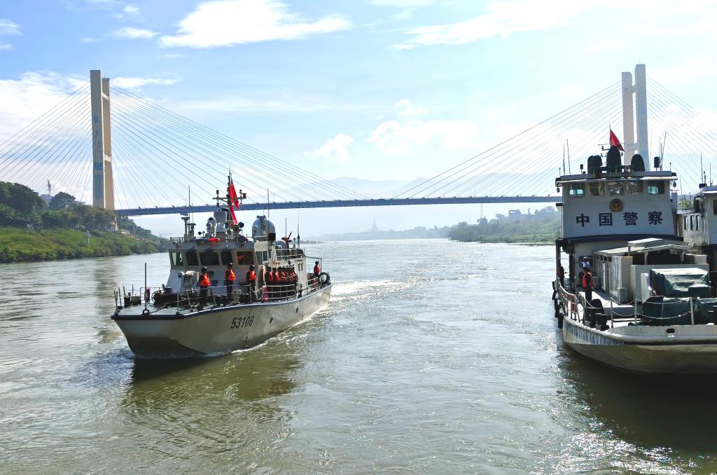 中方两艘执法艇在湄公河上开展联合巡逻执法行动。(云南省公安厅水上巡逻总队供图) 本次行动于10月21日启动,聚焦打击电信网络诈骗等突出跨境犯罪开展系列联合执法交流活动。在历时10天的联合行动中,中老缅泰四国共派出执法人员150余人、执法艇8艘,总航程1500余公里,通过全线联巡执法、分段巡航、联合驻训、信息共享等多种方式,推进执法合作交流不断走深走实,有效提升了联合应对区域安全风险的能力。 联合驻训行动期间,中老缅三方聚焦实战需求,组织开展水上灭火、船艇救援、水上救生等科目训练,有效提升了应急处突和协同作战能力;开展重点水域联合查缉4次,累计检查往来船只28艘、人员150余人次、货物8000余吨,对各类潜在的违法犯罪形成有力震慑。同时,三国有关执法部门还围绕航道识别、装备应用、设备维护等开展专项交流活动。