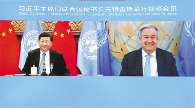9月23日晚,国家主席习近平在北京以视频方式会见联合国秘书长古特雷斯。