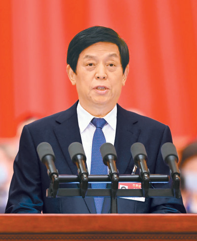 3月8日,十三届全国人大四次会议在北京人民大会堂举行第二次全体会议。 受全国人大常委会委托,栗战书委员长向大会报告全国人大常委会工作。 本报记者 雷 声摄