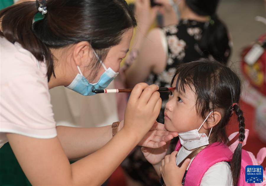 萌娃迎开学 http://www.tlnews.com.cn/2021年09月02日 09:16:58 新华网 9月1日,在合肥市明珠幼儿园徽园分园,老师为小朋友点朱砂。当日,安徽省合肥市明珠幼儿园徽园分园为孩子们举行传统入学仪式,让孩子们体验传统文化,迎接新学期。新华社记者 韩旭 摄 原标题: 萌娃迎开学 作者: 网络编辑:杨露萌