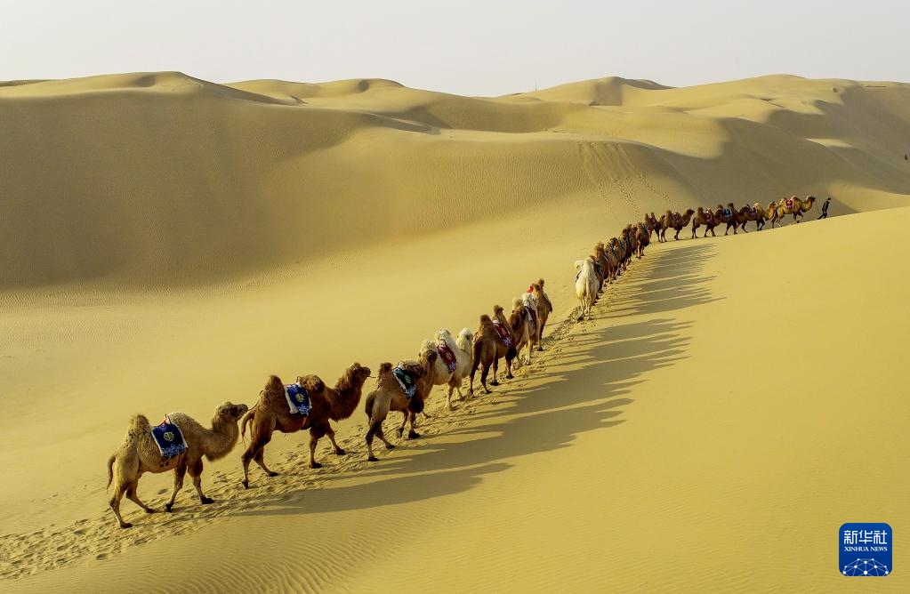 11月29日,一支驼队在库布其沙漠行进(无人机照片)。 冬日,位于内蒙古自治区鄂尔多斯市的库布其沙漠壮美而静谧,驼队行走其中,构成一幅沙海画卷。新华社发(王正 摄) |