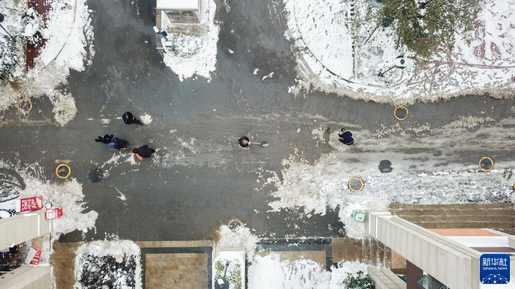 严寒中的坚守 http://www.tlnews.com.cn/2021年12月28日 09:05:39 新华网 12月27日,在长沙市开福区,社区工作人员和志愿者在铲冰除雪(无人机照片)。连日来,受强冷空气影响,长沙持续低温雨雪冰冻天气,城区最低温降至零下3摄氏度,基层一线劳动者在凛冽寒风中坚守岗位。新华社记者 陈泽国 摄 原标题: 严寒中的坚守 作者: 网络编辑:杨露萌