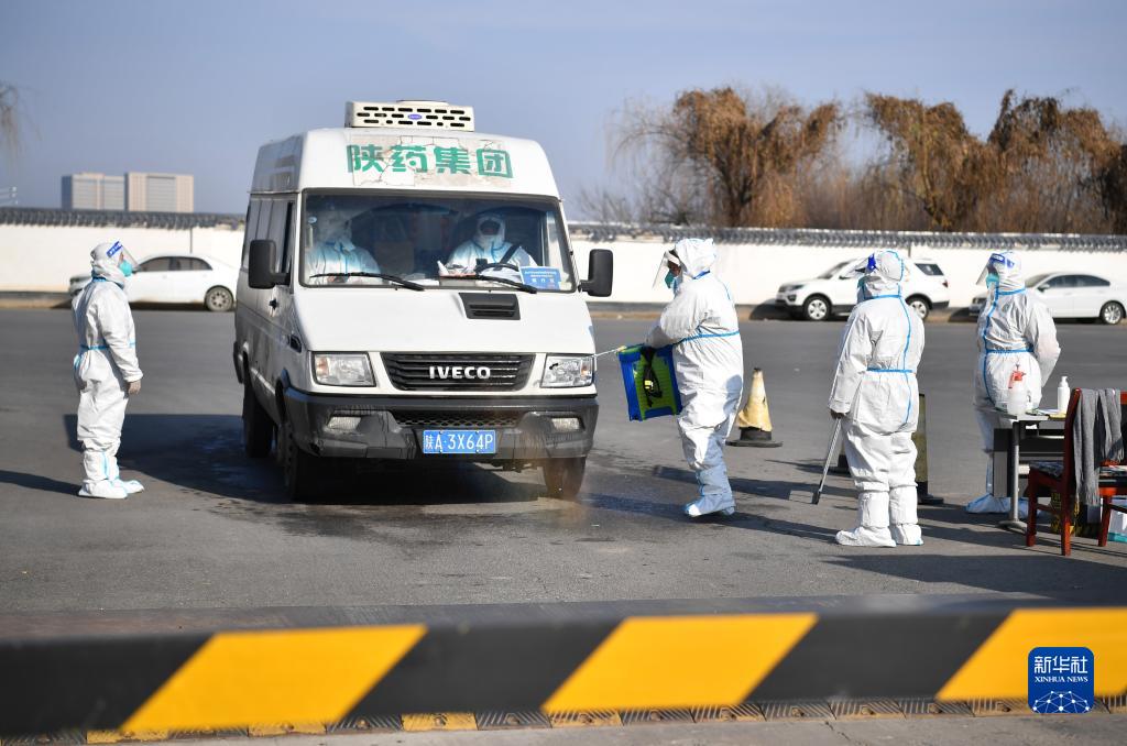 12月28日,陕药集团派昂医药公司工作人员对进入园区的运输车辆进行消杀。 西安本轮疫情发生以来,负责陕西省流通防疫物资和医用药品的骨干企业——陕西医药控股集团派昂医药有限责任公司,通过采取远程办公、封闭管理等措施持续加强疫情防控力度,克服人员减员、运输受限等困难,有效保障应急防疫物资和医用药品源源不断地供给到需求末端。 新华社记者 邵瑞 摄 |