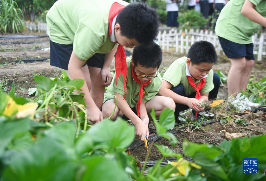 农场劳动开启“开学第一课” http://www.tlnews.com.cn/2022年09月01日 08:34:17 新华网 8月31日,嘉兴市新丰镇中心小学学生在校园农场挖番薯。当日,在浙江省嘉兴市南湖区新丰镇中心小学的校园农场内,学生们参加收番薯、除草、浇水等特色劳动课程,开启新学期的“开学第一课”。新丰镇中心小学是浙江省拓宽校外劳动实践途径试点学校,依托校园农场形成了特色鲜明的劳动课程。新华社记者 徐昱 摄 原标题: 农场劳动开启“开学第一课” 作者: 网络编辑:杨露萌