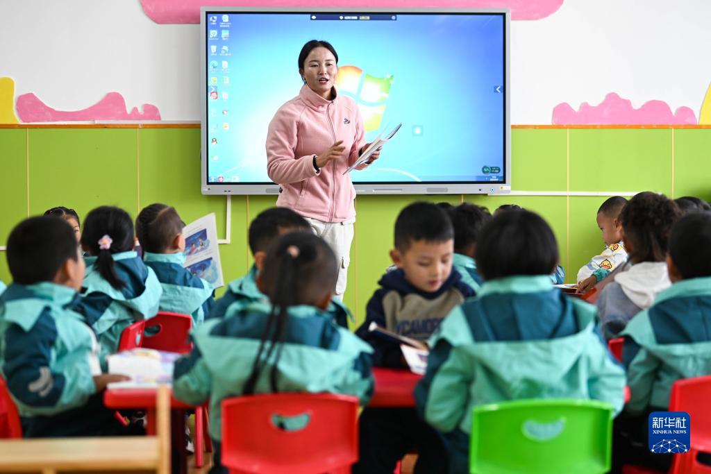 青海果洛:推动学前教育普及普惠 http://www.tlnews.com.cn/2023年09月05日 09:06:22 新华网 9月4日,青海省果洛藏族自治州阿尼玛卿幼儿园老师给孩子们上课。近年来,青海省果洛藏族自治州积极推动普惠性幼儿园建设,逐年完善幼儿园布局和建设规划、增加普惠性学前教育学位供给、扩大学前教育师资队伍,学前教育普及普惠水平不断提升。新华社记者 张龙 摄 原标题: 青海果洛:推动学前教育普及普惠 作者: 网络编辑:杨露萌