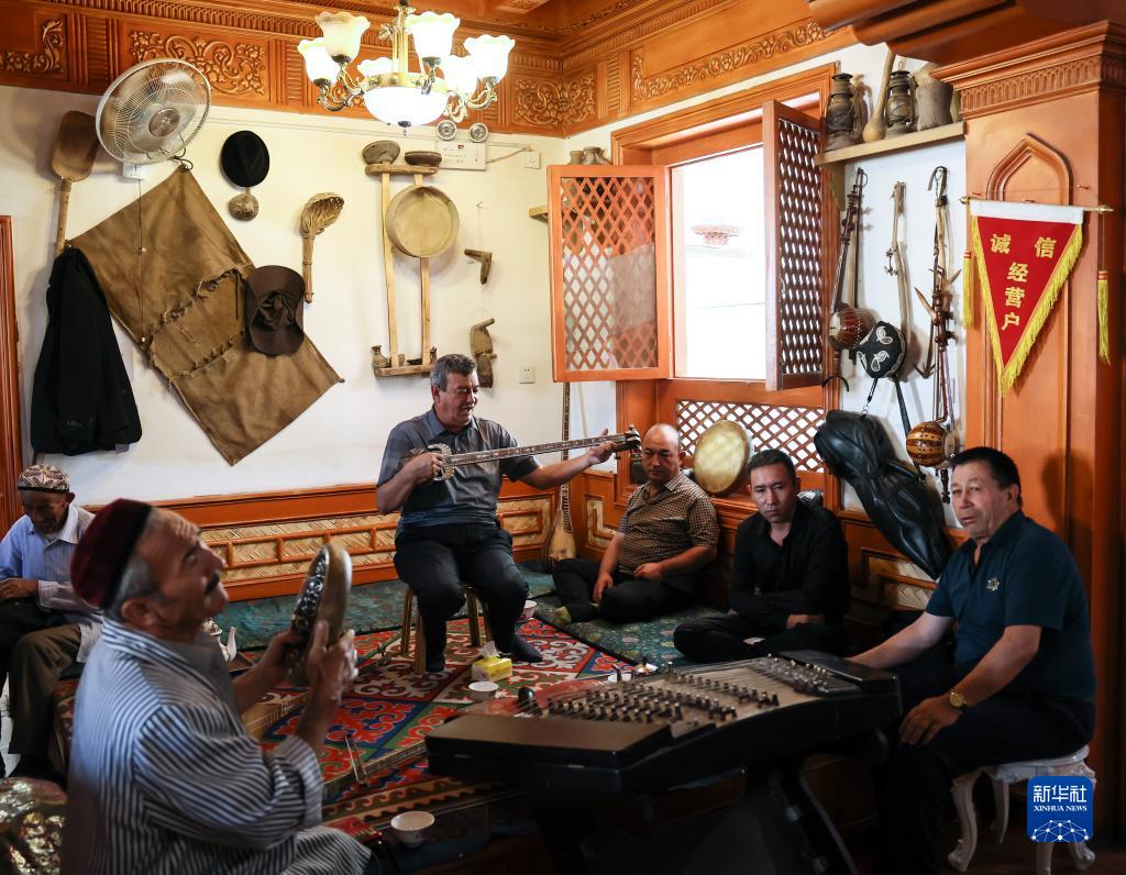 在新疆喀什百年老茶馆品千年茶味 http://www.tlnews.com.cn/2023年09月20日 07:27:11 新华网 在新疆喀什古城百年老茶馆内,乐手在弹唱(9月7日摄)。新华社记者 兰红光 摄 原标题: 在新疆喀什百年老茶馆品千年茶味 作者: 网络编辑:杨露萌