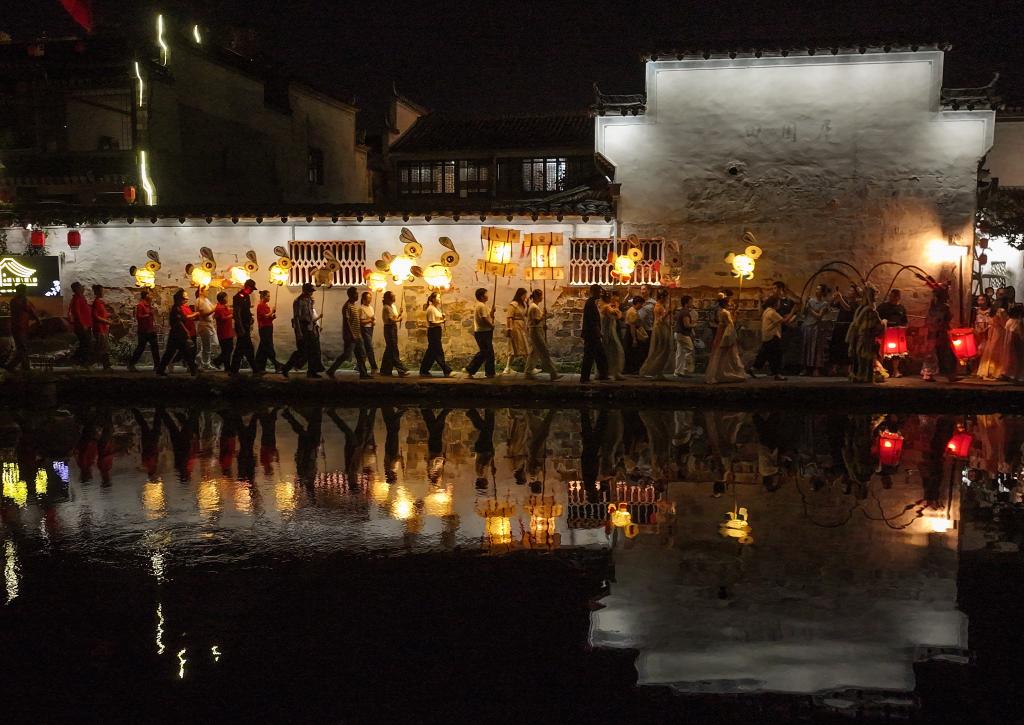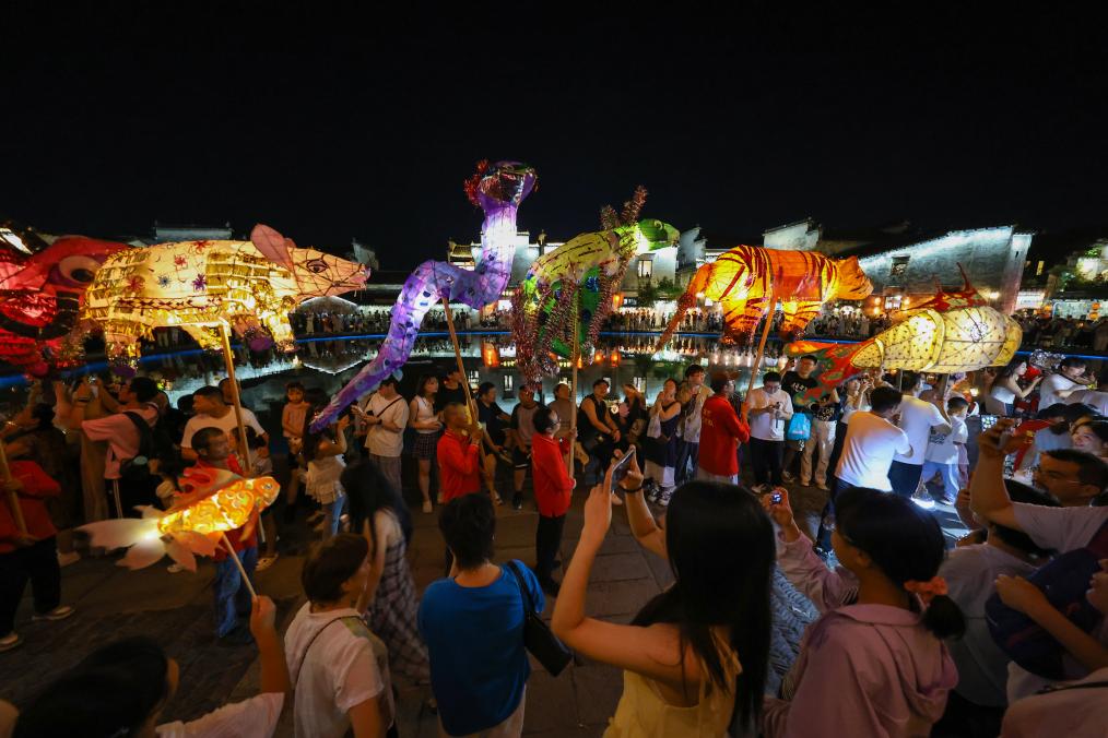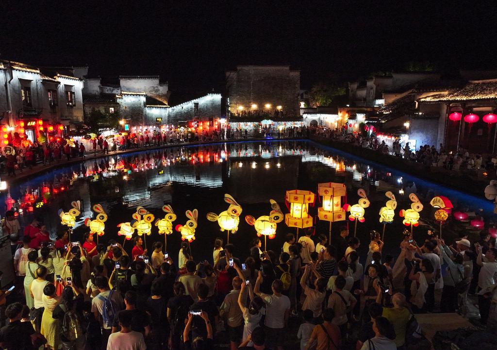 国庆中秋佳节 在世界文化遗产地 安徽省黄山市黟县宏村 一场场流光溢彩的花灯巡游会 在月光下璀璨上演 吸引众多游客前来游玩体验 10月5日,花灯表演队伍在安徽省黄山市黟县宏村巡游(无人机照片)。新华社发(施亚磊摄) 10月5日,花灯表演队伍在安徽省黄山市黟县宏村巡游(无人机照片)。新华社发(施亚磊摄) 皎洁的月光 暖黄的灯笼 人们提着各式花灯 穿梭于古巷月影之间 形成一幅优美画卷 10月5日在安徽省黄山市黟县宏村拍摄的月亮(无人机照片)。新华社发(汪澄摄) 10月5日,花灯表演队伍在安徽省黄山市黟县宏村巡游。新华社发(樊成柱摄) “闹灯会” 是黟县地区重要的节日传统民俗活动 始于唐宋时期 2020年起 宏村成立了传统花灯研学基地 收集、整理和传授传统花灯制作和表演技艺 将这项流传千余年的民俗技艺传承下去 10月5日,在安徽省黄山市黟县宏村,游客在制作花灯(无人机照片)。新华社发(汪澄摄) 10月5日,在安徽省黄山市黟县宏村,游客在制作花灯。新华社发(樊成柱摄) 10月5日,花灯表演队伍在安徽省黄山市黟县宏村巡游(无人机照片)。新华社发(施亚磊摄) 近年来 宏村依托“闹灯会”等民俗 重点打造夜游经济 持续提升夜间消费市场活力 传统灯会不仅丰富了村民的文化生活 也为当地文旅经济注入新活力 记者:黄博涵、刘军喜 报道员:樊成柱、施亚磊、汪澄、付强 |