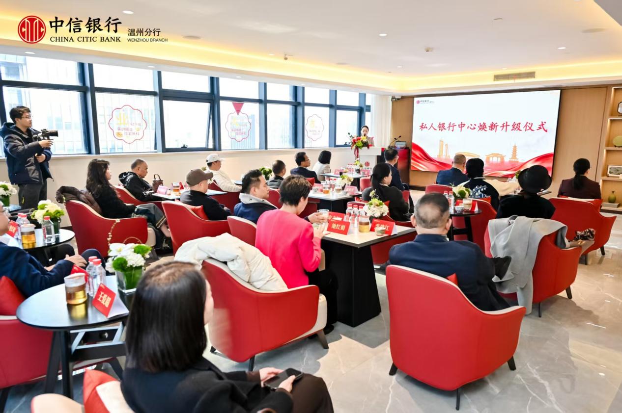 | 焕新启幕 云企同行 ——中信银行温州分行私行中心升级赋能民营经济高质量发展 瓯江潮起处,商道续新篇。近日,中信银行温州分行隆重举行私人银行中心焕新升级仪式。来自政企各界的嘉宾、战略合作伙伴齐聚一堂,共同见证这一助力温州民营经济高质量发展的重要时刻。此次升级并非单纯的空间迭代,更是中信银行温州分行依托“云企会”品牌优势,深化“个人+家庭+企业+社会”综合服务体系的关键布局,标志着该行私人银行服务正式迈入“金融赋能+生态链接”的全新阶段。