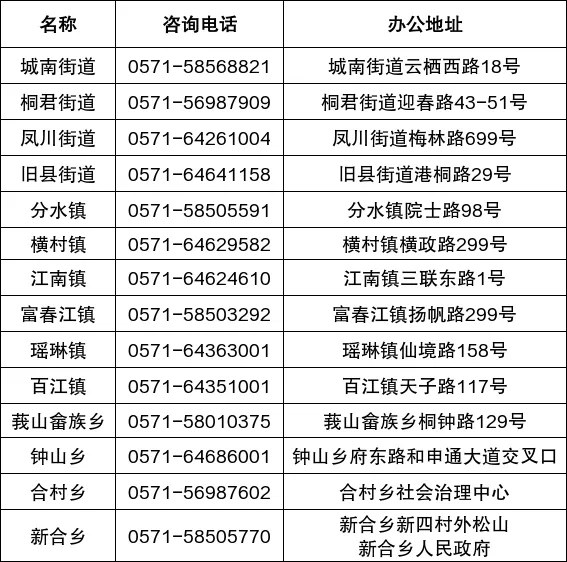 10月16日-10月19日,桐庐县政务服务办事大厅整体搬迁。在此期间,暂停对外办理各项线下业务,预约服务同步暂停。市民可通过浙江政务服务网(https://www.zjzwfw.gov.cn)、浙里办APP等线上渠道申报,或就近到乡镇(街道)便民服务中心办理。 ▲浙江政务服务网 各乡镇(街道)便民服务中心办公地址及联系方式一览表 ▲浙里办APP |