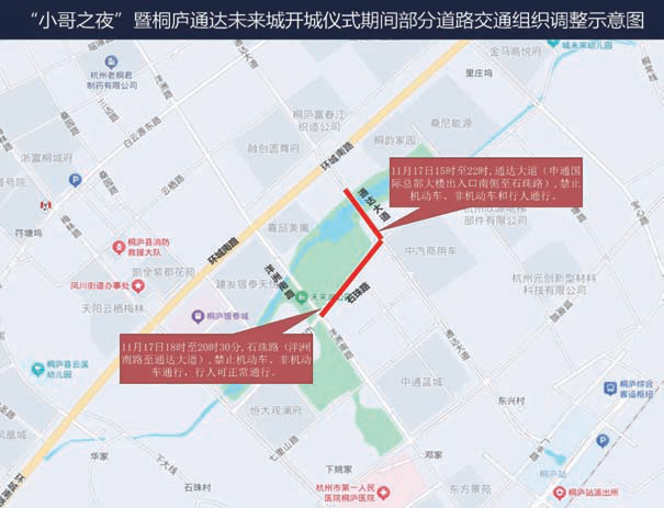 | 原标题: 关于“小哥之夜”暨桐庐通达未来城开城仪式期间调整部分道路交通组织措施的通告 |