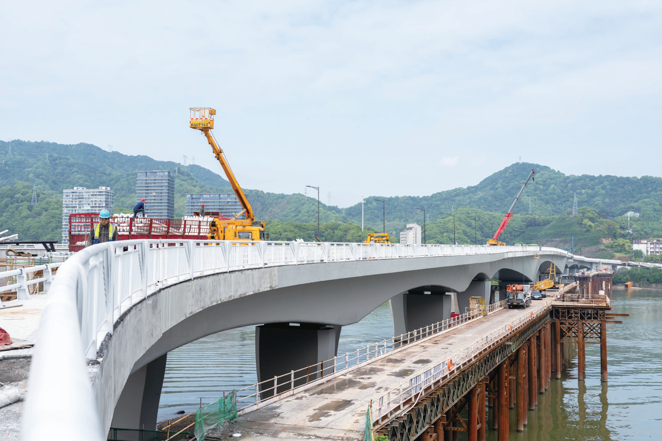 4月25~26日,桐庐县舞象山路道路建设工程富春江一桥转入全封闭施工,建设接坡段及实施永久性标志标线,这也意味着这座跨江枢纽即将迎来全面通车。 富春江一桥右幅主桥采用(77+140+77)米三跨连续箱梁结构,依托纵、横、竖三向预应力技术保障整体强度。目前,除了右幅主体结构,伸缩缝、栏杆、人行道、梯道桥等附属工程也基本完成,各项验收工作正同步推进。 “近期将实现富春江一桥的全面通车。”桐庐城市基础建设有限公司经理汪华钢介绍,通车后富春江一桥将恢复双幅双向通行能力,与舞象山隧道、洋塘大桥形成完整通道,富春江二桥的交通压力可得到缓解,主城区与横村方向的通行时间大幅缩短。 舞象山路道路建设工程南起春江路,北接S208省道,全长约3.72公里,宽32米,设计时速60公里,为城市主干道,项目总投资约13.8亿元。工程主要包括富春江一桥拆除重建、舞象山隧道新建、洋塘大桥新建三大子项。 项目自2021年3月25日开工以来,先后于2024年1月26日实现富春江一桥左幅通车试运行,2025年1月26日洋塘大桥通车试运行,2025年5月6日舞象山路通车试运行。 “通车后,我们将立即启动施工场地的恢复与修复工作,包括场地清理、绿化恢复等,力争6月完成全部撤场。”汪华钢表示。 项目全面建成后,将与富春江二桥、分水江大桥一起构成新老城区之间的联系主通道,完善区域路网结构。洋塘、浮桥埠等区块与主城区实现“无缝衔接”,横村、分水等北部乡镇融入城区“半小时经济圈”,为推进桐庐城乡协同发展、加速融杭接廊注入强劲动能。 |