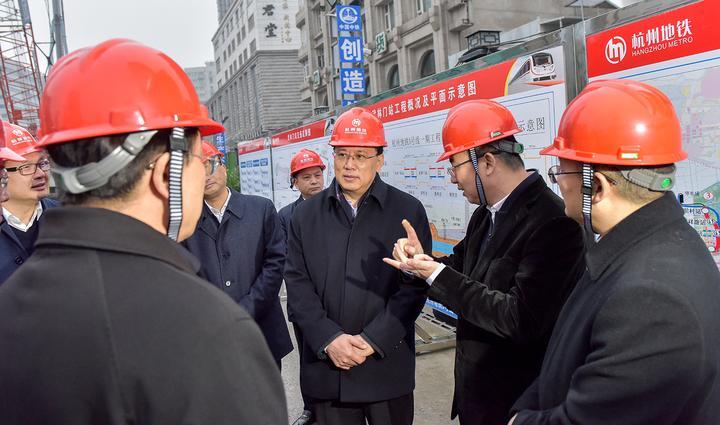 袁家军在地铁3号线武林门站施工现场。 在杭州火车城站,袁家军实地检查重点场所疫情防控和运力保障、车站安检、便民服务等情况。袁家军指出,春运持续时间长、人员流动性大,疫情防控任务重。要推动关口前移,及时落实人员密集场所、重点场所和公共交通工具的通风、消毒、测体温等必要措施,精准做好有疫情地区来浙人员摸排工作。在华润万家超市云河店,袁家军细细察看生鲜、猪肉、家禽等年货供应和卫生防疫情况,要求加强节日市场供应,精心组织货源,稳定市场价格,强化安全监管,以高质量供给满足群众多样化消费需求。在地铁3号线武林门站施工现场,袁家军对“一工点一方案”的风险管控做法表示肯定,要求时刻绷紧安全生产这根弦不放松,层层压实责任,保安全、保进度、保质量,筑牢安全生产防线。