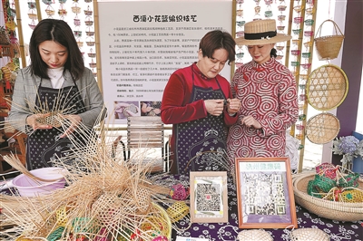 西溪深潭口有各种民俗非遗文化展示,“小花篮”在其中颇受欢迎。 把传统手工艺等 非物质文化遗产传承好 “特别亲切随和”,是何蕾对习近平总书记此行最直观的感受。“一路上,总书记不断跟游客打着招呼,看到乘摇橹船的游客过来了,总书记挥手致意,还笑着说‘我很想去,就是人太多了’。” 西溪湿地80后员工周越倪也感受到了总书记的平易近人。当天,她在深潭口文创产品的摊位前,推介西溪湿地近100款文创产品。“一开始我很紧张,没想到总书记笑着走到我们摊位前,询问这些产品是不是我们自己做的。” “见总书记这么随和,我就大着胆子介绍了一组主题为‘西溪且留下’的文创产品,没想到总书记很支持我们,特意买了一件。” 同样感到暖心的还有国家级非遗项目绿茶制作技艺(西湖龙井)省级非遗代表性传承人樊生华和他的徒弟严磊。当天,他们正在深潭口民俗非遗文化展示区域,展示西湖龙井炒制技艺。氤氲的茶香,也吸引了总书记。 “总书记走过来,从小严的大锅里抓了一把茶闻了一下。”樊生华说,总书记后面又跟了一句话,让他印象特别深刻。“总书记说,两个巴掌做出来的东西,有些科技还是无法取代的。” “离开炒茶摊位前,习近平总书记还特别回过头,预祝我今年能有个好收成。”这话让樊生华心里暖暖的。 西溪小花篮,作为浙江省非物质文化遗产之一,也是西溪的一张文化名片。总书记到湿地公园那天,俞小兰正坐在摊位前编织传统的西溪小花篮。“总书记看到我们展位上有一个精致的竹编口罩,觉得很新鲜,拿在手上看了半天。”俞小兰专门介绍说,这个口罩是根据疫情的需要,创新制作出来的,整个口罩是用五角星小竹篮的底部支撑起来的,编好后,再用蓝印花布缝起来,里面再垫一块日常口罩里的纱布。“转身离开前,总书记特别鼓励我们把传统手工艺等非物质文化遗产传承好。”俞小兰笑着说,“总书记的殷切嘱托,让我传承好这门传统手工艺的动力更足了。”