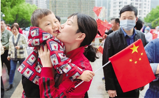 4月18日,在淳安县第一人民医院欢迎仪式现场,医疗队队员徐佳亲吻自己的儿子。 拍友 章飞燕 摄 浙江在线4月19日讯(浙江在线记者 陆遥 郑文 徐坊)4月18日,浙江第六批返浙支援湖北医疗队的175名队员,结束了在安吉的14天集中隔离休养,回家与亲人团圆。这是浙江最后一批撤离武汉的医疗队,由浙江第五批支援湖北医疗队和浙江援武汉抗疫前方指挥部组成,在圆满完成各项疫情防治任务后,于4月3日返回浙江。至此,浙江支援湖北医疗队2018人全部回家和亲人团聚。 “我的英雄妈妈要回家啦!”浙江省人民医院肾脏病科主治医师邵丽娜9岁的女儿沁沁已经兴奋了好几天。邵丽娜觉得,最对不住的就是女儿。疫情发生后,同为医务工作者的丈夫也坚守在一线,沁沁一直由爷爷奶奶带着。“回去要好好抱抱她。”邵丽娜说。 2月19日,省人民医院及其5家紧密型医联体医院医务人员组成了浙江第五批支援湖北医疗队,在院长葛明华的带领下抵达武汉。在圆满完成武汉大学中南医院重症病区的救治工作后,医疗队主动请缨,转战武汉市金银潭医院重症病区。累计经管患者117人,治愈出院67人,病情好转后转院转科50人,无一人转化为危重症,无一人死亡,医护人员零感染。葛明华说:“在武汉期间,我们充分感受到了团队的力量。大家互相信任、互相督促、互相提醒,奔着同一个目标共同努力。现在回想起来,所有的努力和辛苦付出都是值得的。” 上午10时许,在省人民医院的欢迎仪式现场,血液病科医生王华芳的男朋友王先生手捧鲜花,还提着一袋零食。“她去武汉以后,每隔一周我就准备一袋零食,都给她带来了!”王先生笑着说,他还制作了一个小视频,是两人每天视频电话的截图集,作为对这段岁月的纪念。相见的那一刻,两人紧紧拥抱在一起,王华芳泪流满面。 手术室护士谭奇凯说,在安吉的14天,感动还在延续。烘焙、太极拳、竹编、花艺、生态文化乡村旅游体验……当地精心准备的活动,让队员们得到了身心放松。安吉县的老干部们半个月内完成了1044幅书画作品的创作,在医护人员结束休养离开安吉前,赠送给每一位英雄。 据介绍,疫情发生后,浙江省累计派出2018人的医疗队伍支援湖北,为遏制疫情扩散蔓延和救治患者,为打赢武汉保卫战、湖北保卫战贡献了浙江力量。浙江支援湖北医疗队6个集体、21人被表彰为全国卫生健康系统新冠肺炎疫情防控工作先进集体和个人。 浙江援武汉抗疫前方指挥部指挥长、省卫健委副主任曹启峰表示:“很高兴,我们2018名支援湖北医疗队员都安全地回家了,全员‘零感染’。不过,战斗还没有结束,接下来,我们要回归各自的岗位,继续投入到新的抗疫战斗。” |
