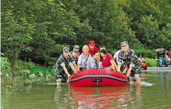 7月9日下午,淳安县威坪镇党员干部和民安救援队队员一同用冲锋舟运送群众。 拍友 方俊勇 吴祥丰 摄 淳安 党员义工送来热饭 9日一早,天气转晴,积水高度从接近半腰下降到大腿,淳安县威坪镇杜川村村委会主任吕大方和驻村干部夏健帆蹚着积水,挨家挨户分发面包、矿泉水以及消毒水等,组织村民开展自救。 截至9日19时,淳安转移安置人员5074人(游客135人)。随着天气好转,全县正抓紧窗口期,紧张有序开展救灾相关工作,妥善安置受灾群众,全面抢修道路,全力防范次生灾害,并做好卫生防疫、水环境安全等工作。 “你们安心住在这里,一日三餐我们会准时送来。等水退了,我们再回家。”在梓桐镇,湖水倒灌致使一些库区农户家里开始进水,镇党委、政府第一时间组织镇村两级党员干部转移农户。其中,梓桐中学安置点安置了来自并峰村的35名农户。为了让大家吃上热饭,包村干部立即联系镇机关党员义工服务队送餐。 趁着雨后初晴、水位有所下降,淳安各地积极开展农业生产灾后自救工作。中洲镇一支由青年党员干部组成的“抢收先锋队”,在南庄村党建消薄增收“两干”基地抢收受灾竹荪;临岐镇3700余亩中药材基地浸水严重,镇农办农技人员一早就到田间地头走访,提出相关救灾方案…… 9日晚,淳安县应急管理局指挥大厅仍灯火通明。该局副局长程胜红告诉记者,根据天气预报,淳安仍有降雨,该县的防汛Ⅰ级应急响应尚未取消,全县仍将继续做好防汛防洪和防灾救灾各项工作不放松。