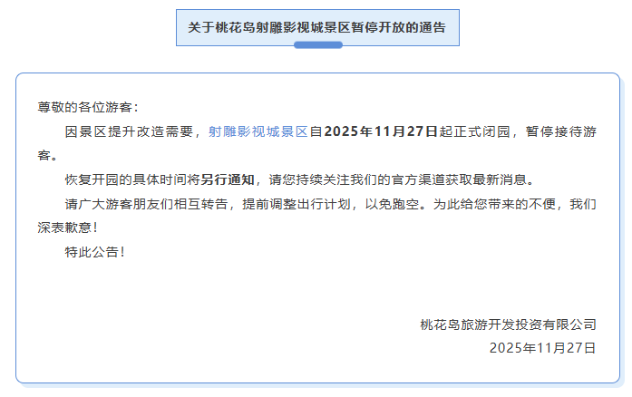 通知截图 恢复开园时间将另行通知,请关注官方渠道获取最新消息。