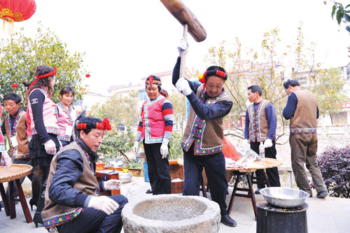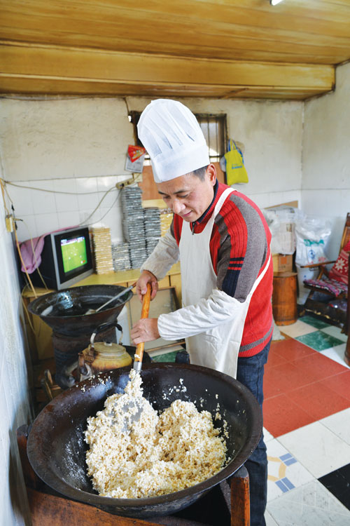 ![]() 畲乡年俗有讲究 在畲乡莪山,畲族人过春节,一般都要准备半个多月,很隆重,也很讲究。春节前,家家打尘(搞卫生)、杀过年猪、过年鸡、做豆腐、准备过年柴,为全家人做新衣裤新布鞋。当然这要看每家的经济条件而定,但无论如何过春节,是畲族小孩最盼望的节日。过去人们生活苦,一年到头,想要穿新服饰、吃好菜只能在春节才能达成愿望。吃年夜饭之前全家人必须洗刷清爽后换上新服饰,开始还年福:一般祭拜先拜天地(属还年福),不拜祖先,正月初一早上爬起拜祖先,拜五圣菩萨。而且畲族人认为拜五圣菩萨时间不宜过长,过长了五圣菩萨要懒掉了。 除夕夜家家户户要吃年夜饭,也叫团圆饭。在外经商、读书、做工的都要回家吃团圆饭。吃团圆饭前,先要祭祖,让历代的祖宗先吃年夜饭。祭祖结束,关好大门,大门上挂号灯笼,外人看到大门上挂着灯笼,就不会来了,因为吃年夜饭是不允许外人来的。一家人按照辈份大小坐好。然后这一家的最高长辈,开始拿着草纸“搽屁股”。因为过年了,人人要讲吉利话,从最小的孩子嘴巴先搽,小孩搽好了,在搽年轻女子的嘴巴。一边搽一边说“搽屁股”。被搽过屁股的人,说不吉利的话等于放屁。 吃年夜饭开始时,向邻居们讨吉利话:“隔壁爷爷!请过来吃年夜饭了。”隔壁爷爷回答:“好,剩在那里!”又向另一个邻居说:“隔壁大妈!请过来吃年夜饭了。”隔壁大妈说:“好,剩在那里!”年夜饭吃好,长辈会给小孩发“压岁钱”。发过压岁钱,小孩们就可以开门去玩。十二月二十四送灶老爷上天,除夕夜要请灶老爷回家过年。等小孩睡觉后,大人们要打扫卫生,把水缸挑满水,事后便“封挂”,扫帚、扁担、水桶、秤等等用具全要“封挂”,因为它们辛苦了一年,过年要休息。到正月初二才“开挂”。“封挂”后,屋柱上贴上“童言妇语,百无禁忌”的红纸条。这一夜,大人们要“坐夜”:就是这一夜不睡觉,要坐到天亮。意思是告别旧年迎接新年。 从古到今,在莪山畲族乡的传统节日里--春节,村民中有个不成文的习俗,男主人与女主人之间在家庭中的角色变换,正月初一早上,妇女可以睡在床上“享福”,当家的男人起床后,洗脸洗手,再烧好红糖汤,捧到床前请女人喝红糖汤。妇女喝过红糖汤才起床。洗脸后,与一家老小吃男人烧的长寿面。喝了红糖汤来年生活甜密,吃了长寿面全家能健康长寿。 ![]() 畲家美酒度春节 另外每到冬季,春节将要临近的时候,畲家人就要开始准备自制红曲酒。红曲酒清香甘甜,是畲族人家家户户每年过春节时必备之酒,春节期间走亲串门时,畲族人都必定会拿出自己的传统佳酒招待客人。畲族人也十分爱喝酒,他们平时在季节内,劳作之余都会喝红曲酒,畲家酒香醇爽口,度数很高而不上头,是桐庐的名酒。而除了畲乡名酒红曲酒以外,还有一种畲乡蜜酒。 畲民原祖居广东潮州一带,晚唐战乱时逃至闽北,明中叶一部迁到浙江省文成、景宁、泰顺,至清光绪年间有数十户钟姓畲民迁至莪山,至今已有200年历史。红曲酒为畲民的传统饮品。每自农历十月起,畲民家家户户自酿红曲酒,主要用于自饮、招待客人和红白喜事。 红曲酒的酿制选用当年新出之上等糯米(或粳米也可),用篾丝箩在清水中淘洗,剔除杂质。然后放在大水缸内,注满纯净的清水,浸泡24小时。再把浸胀的糯米放入饭甑内蒸煮,煮熟后将糯米饭倒于凉席上摊开自然冷却,用手插入感到不热即可。当糯米饭自然冷却到20℃以下,加入红曲,在大凉席中拌匀,转放入大缸内,用搅拌棍搅拌均匀,并在缸中间用搅拌棍插一圆孔,让其发酵。 在发酵过程中,要不断用搅拌棍搅拌,直至酒糟全部沉下去为止。整个操作过程要室内通风,保持空气流畅。冬天温度0℃以下时,要做好保温措施,关闭门窗,酒缸周围用稻草或棉被围裹,防止冻害。 待酒缸内红曲酒全部澄清,取少量酒品尝,鉴定其是否酿成。从发酵到酒酿成,时间一般为20—30天,夏秋天只要8—10天。发酵成功后,可把过滤篾丝篮放在酒缸口上,将酒舀入过滤,经澄清后再装灌酒坛冬季酿制的红曲酒可以存放3年以上,地窑中封严长达五年以上,其味更浓、香且醇。 畲民把红曲酒作为补品,妇女生小孩时,用红曲酒代水来煮鸡蛋,促使产妇恢复体力,多产奶水。农民劳作前后喝红曲酒,下水能抗湿气,高温时能补水,体力疲劳时可舒筋活血,冬天可抗寒冷。红曲酒还具有补肺、健脾、止汗等功效,可治妇女腹中及产后瘀血,还可以杀山岚瘴气,治疗跌打损伤效果甚佳。红曲酒还是畲家烧菜的必备佐料,以红曲酒调味,其菜肴色、香、味俱全,特别可口。红曲酒糟蒸带鱼和红曲酒糟烧猪大肠是畲家名菜,肉嫩味鲜可口。红曲酒糟喂猪,其猪长得快,猪肉带红色且味鲜香。畲民以红曲酒糟和菜饼、面粉拌作鱼饵,鱼极易上钩。 ![]() 桐庐年食之冻米糖 冻米糖,亦称炒米糖,它作为早期民间自制的一种食品在桐庐县内广为流传,每逢过节,每家每户在年前操办年货,人们把冻米糖视为一种不能少的年货。 而在桐庐分水一带,还有一种比较有名的进士喜冻米糖。相传,桐庐分水的九龙山上住着一家农户,父亲早逝,留下母女俩相依为命,以制作冻米糖赖以为生。在一个寒冷的夜晚,有一进京赶考的书生,因银两失窃,饥寒交迫,晕倒在母女门前。母女俩将书生扶入家中救助,还把冻米糖送给书生作赶考路上的干粮。书生一路上以冻米糖充饥直到达京城,参加了