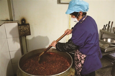 员工将牛肉粒、笋干粒等配料倒入酱锅。 古人说:“开门七件事,柴米油盐酱醋茶。“酱”排在柴米油盐之后,足见人们对其重视程度。酱是老百姓日常生活的必需品,只要开锅做饭,没有不用到酱油和其它调味品的。这其中的酱,不仅仅是指酱油,也指辣酱等酱料。桐庐人对辣酱也是情有独钟,家家餐桌上都少不了一瓶酱香浓郁的辣椒酱。特别是在外的桐庐人,每每想到家乡又辣又香的辣椒酱,忍不住会垂涎三尺。 家家酱香飘 在桐庐,不仅家家户户爱吃辣酱,还有不少人家都会自己做辣酱,每家的辣酱都有自家的特色。农家辣椒酱都是纯手工制作,没有任何添加剂,味道醇厚而浓香,最能佐饭开胃,平时要吃的时候,装上一小碗。最搭配是吃面条的时候,不忘佐以辣椒酱,如此吃法,可谓胃口大开。也可将辣椒酱淋上几滴香油,就倒进米饭中,和米饭充分拌匀,嗅着香辣无比,不免食欲大增,大朵快颐。舌尖纵然辣呵呵的,但依旧“咝咝呵呵”端着饭碗,没有停顿下来的意思,直至满头大汗,大呼过瘾。 每每入秋以后,菜园里的辣椒红透了,辣椒基本上属于秋后下市的辣椒了,所谓的“上市西瓜下市椒”,是指头批的西瓜最甜,下市的辣椒最辣,而且肉质肥厚,是制作农家辣椒酱的首选材料。这时,十里八村开始飘起浓重的酱香来。 村中上了年纪的妇人都会做得一手好酱,在那物资匮乏的年代,靠着巧手做的酱料,维持了一家老小的口福。做酱就要有酱曲,黄豆便是酱曲的原料。把黄豆精心筛选过后,浸泡,放到土灶台上用木制蒸笼把黄豆蒸熟、蒸透……那蒸熟黄豆的香味,惹来了嘴馋的孩童,眼巴巴的瞅着灶台,家中老者往往会舀了一小碗递给孩童,几个孩童便用手抓着就吃,真香啊,绵绵的,带点甜味……随后,把熟了的黄豆裹上了面粉,放到簸箕上,上面盖上了棉布,还有叫不出名的树叶,放到了密封的小房间里,还告诫家中孩童,不许开门。孩童总是忍不住的想去看看,那裹了面粉的黄豆成了什么样子,跟在长者身后,看到掀开棉布后,那原先裹着面粉白白黄豆周身都长了黄黄的绒毛,原来这是做酱料最最关键的酱粉。 等到天气晴好,就计划制作辣椒酱。挎上大竹篮到菜地里摘辣椒。辣椒摘回来,不能去掉辣椒蒂,若先去蒂再入水洗,辣椒进水容易腐烂,还要把那些破损的辣椒筛选出来。洗干净的辣椒放在竹匾上晾晒,直至水分完全晾干。之后,依次将辣椒蒂拔去。 剁辣椒用的工具是简单的木盆和菜刀,为了防止辣椒飞溅,也有人放在木盆里剁。红彤彤的辣椒躺在木盆里,可爱诱人。这个时节,走在乡村里,家家户户都传来“乒乒乓乓”的剁椒声,空气中弥漫出辣呵呵的味道。 再后来,就是配上了盐、生姜、大蒜、配合着酱粉,拌匀后放到了酱缸里,压实,密封。 盐放少了,存放的时间不长,容易变酸。盐放好了,搅拌均匀就可以装入坛中,密封储藏。 我记得过了整整一个冬天,在青黄不接的月份里,地里已经没有什么新鲜的蔬菜了,这一缸缸的酱,便是家里人最好的佐餐佳肴了。香浓的辣酱,不止拌饭、拌面、下水饺、煮萝卜、回锅肉、面饼等等……在过去,生活特别困难时,谁家没酱了,左邻右舍也常常会送来一碗两碗酱接济一下。现在,生活条件好了,大家便在辣酱中加入了肉末、豆腐干、油豆腐、花生米等配料,进一步丰富了辣酱的口感。 |